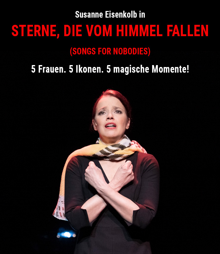 Am Freitag, 17.04. / Samstag, 18.04. / Sonntag 19.04.2026 bieten wir Ihnen alternativ die international gefeierte One-Woman-Performance „Sterne, die vom Himmel fallen (Songs for Nobodies)! 5 Frauen, 5 Ikonen, 5 magische Momente!
